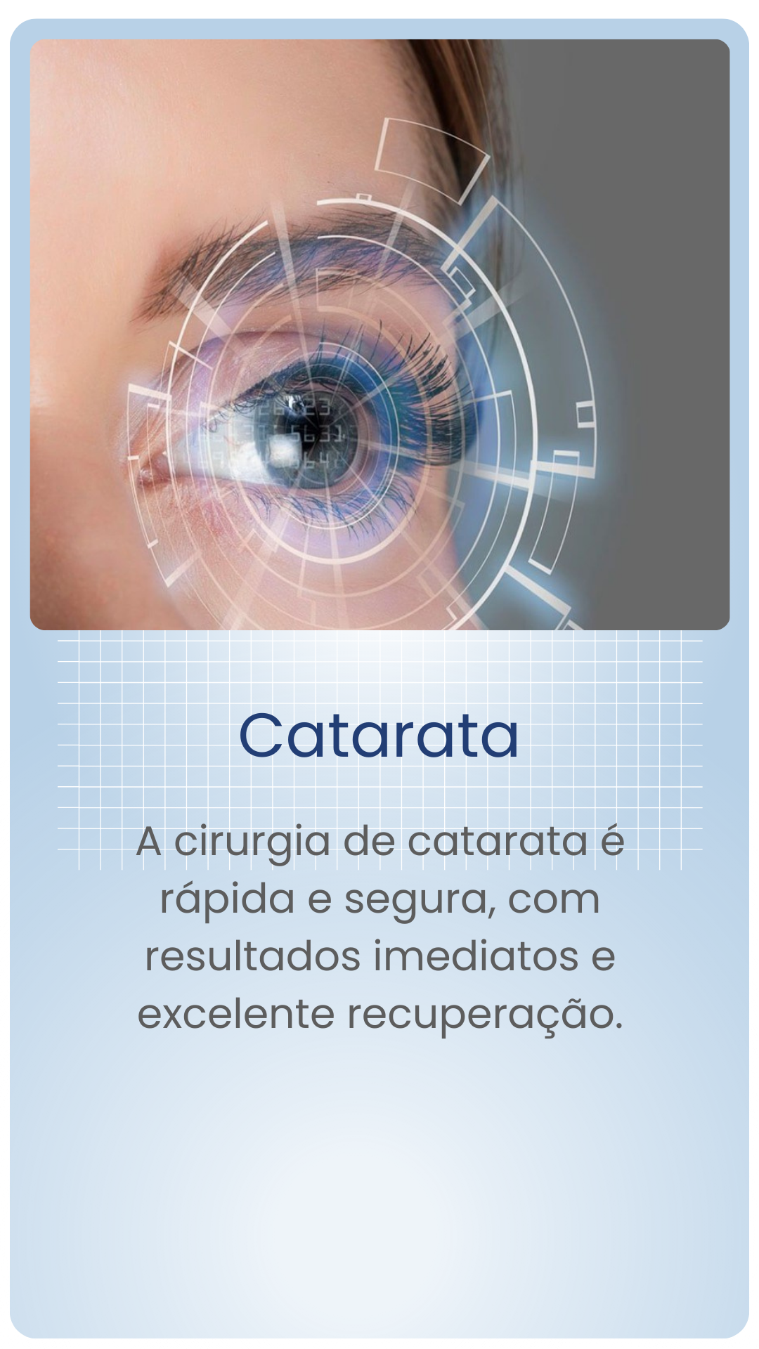 A cirurgia de catarata pode também ser indicada para corrigir erros refrativos como miopia, hipermetropia, astigmatismo e presbiopia.